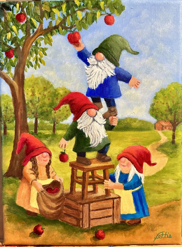 The Gnome Great Pumpkin Ride. (Acrylic on 12” x 9” canvas)