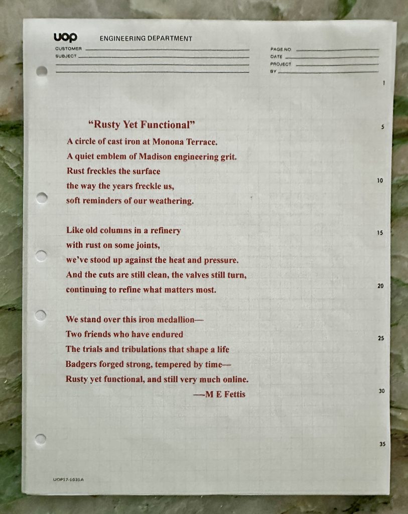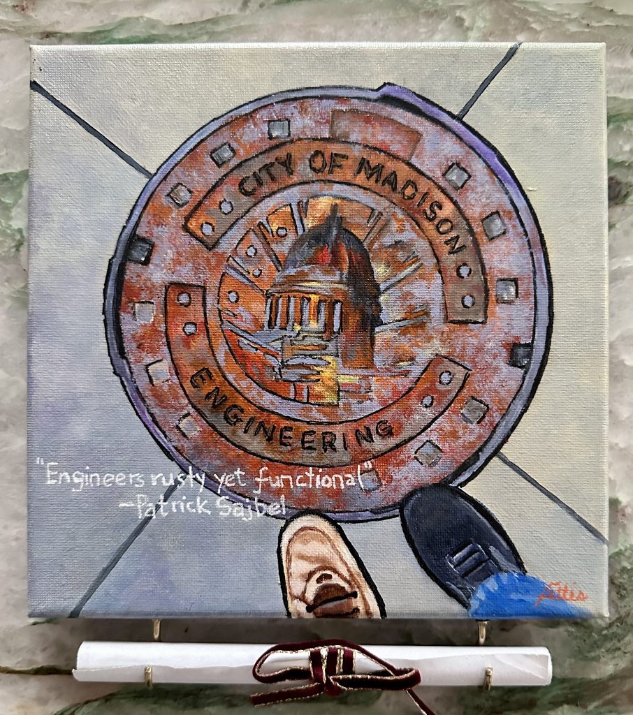 ”Rusty yet Functional”. The poem (attached to the bottom of the painting, that was inspired by this painting from Madison Wisconsin is shown below. It gives a little insight.