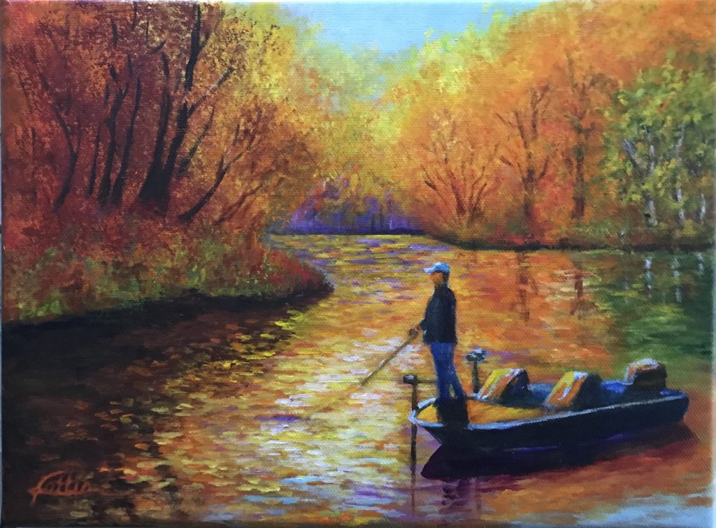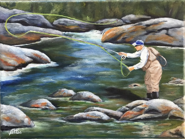 Fly fisherman (9” x12” canvas). Part of Fly Fishing triptych.