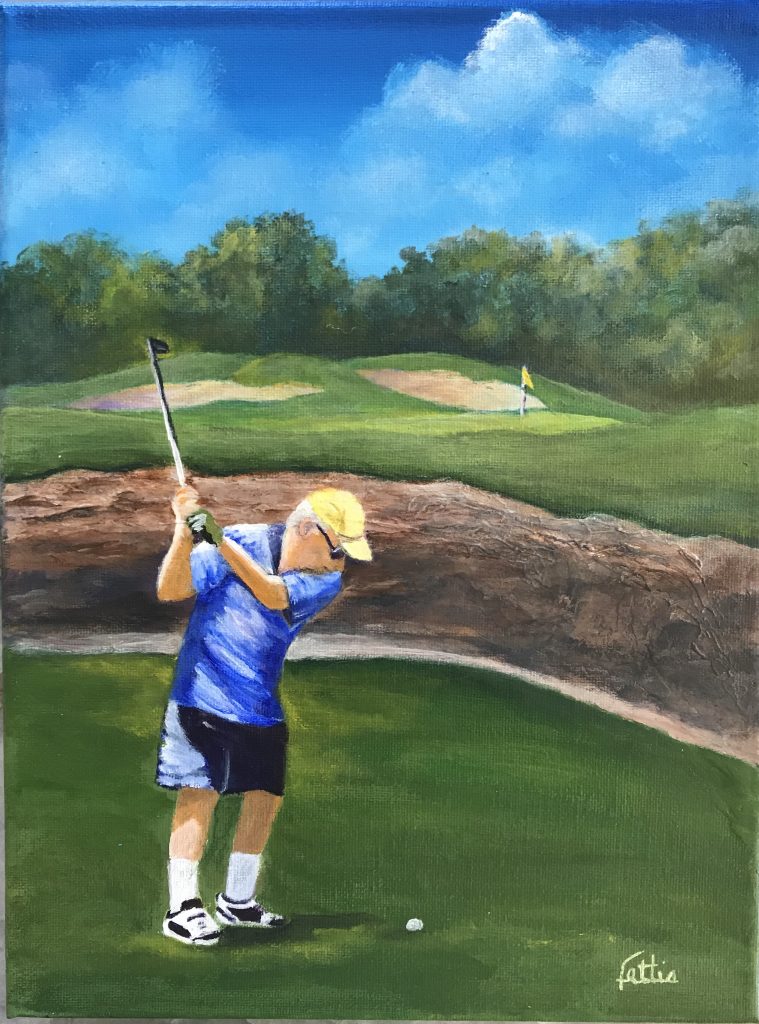A friend playing golf at Hard Rock Golf Club in Playa del Carmen. (9” x12”) SOLD