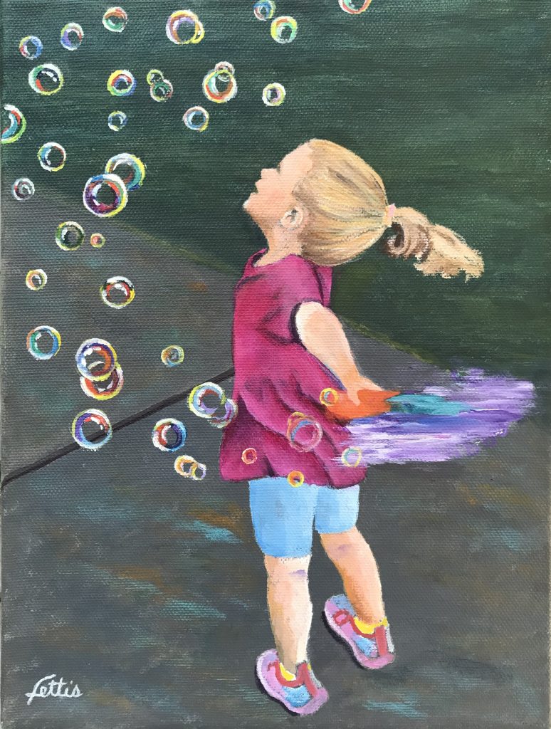 Painting 1/2 of my oldest grand-daughter. The sheer joy of bubbles. (9”x12”) SOLD