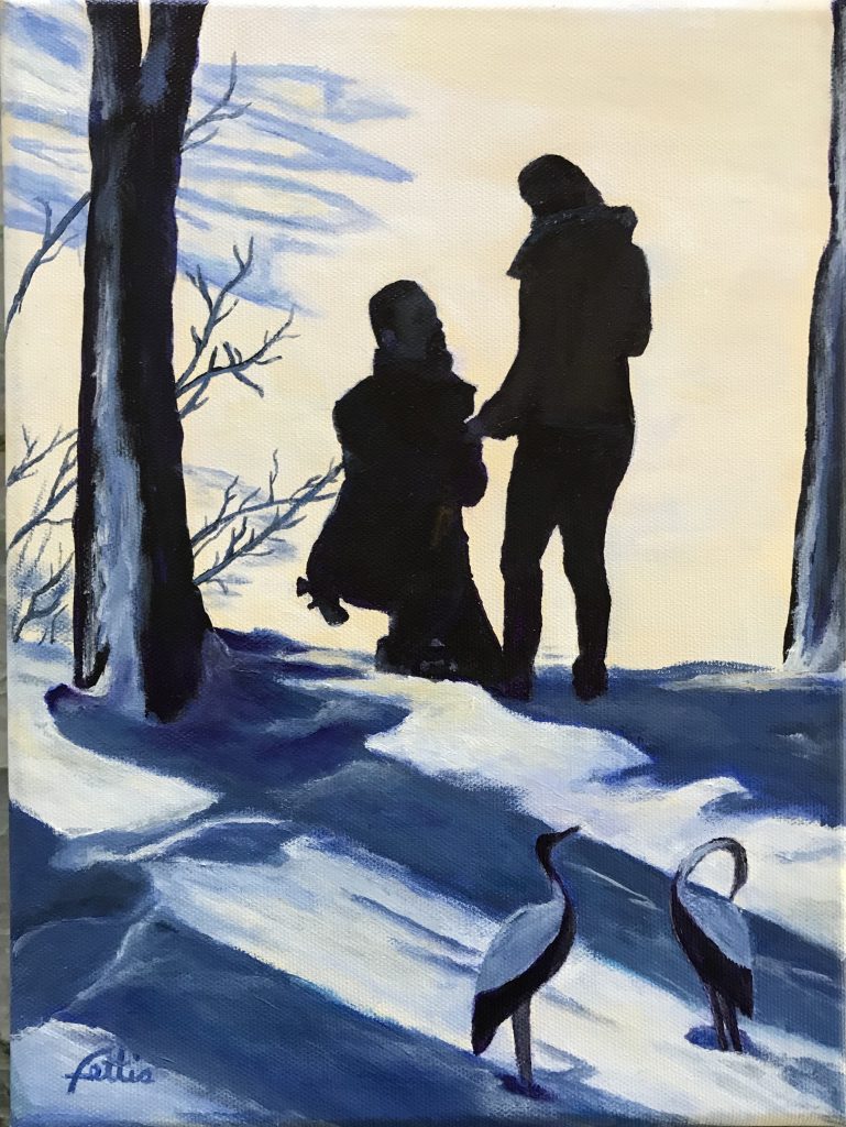 Wedding proposal with ”LOVE” in the air. This was a commissioned piece for my nieces’ daughter. Her fiance proposed in January at her grandfather’s place in Rhinelander, Wisconsin. SOLD