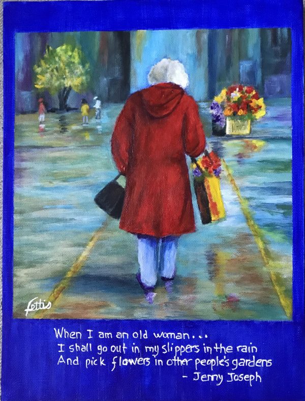 “When I’m an old woman” (9” x12” canvas). Inspired by a Ginger Cook tutorial.