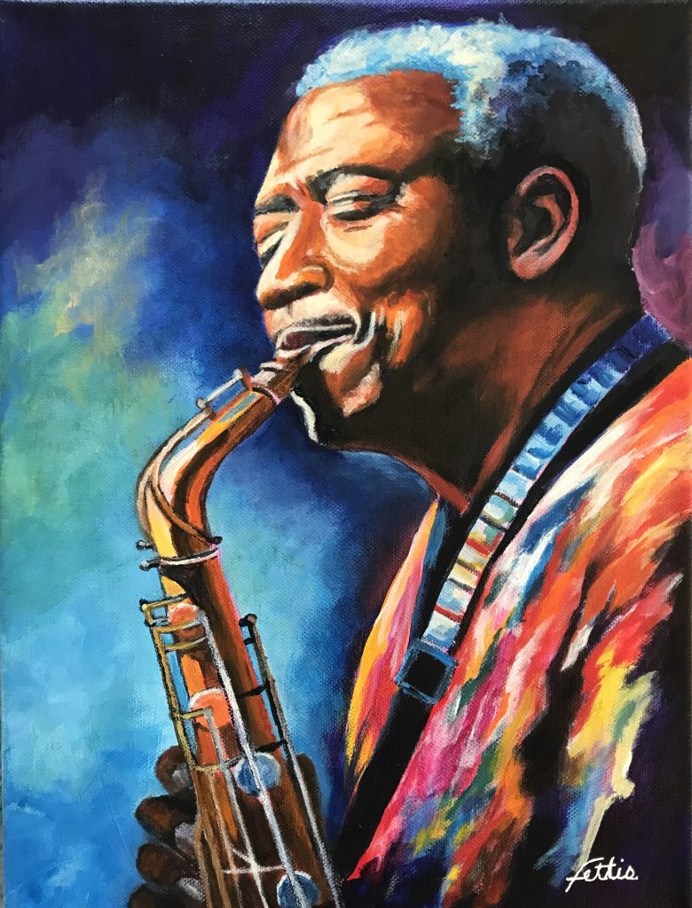 Jazz man (9” x12” canvas). Based on Ginger Cook tutorial.