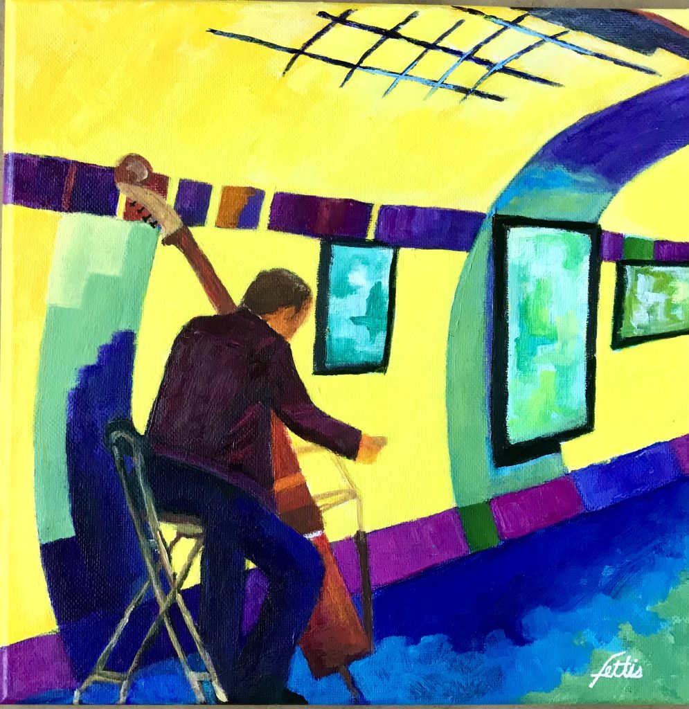 Busking in the subway…Did you notice or hear him? (9” x12” camvas) Also appears in Abstract section.