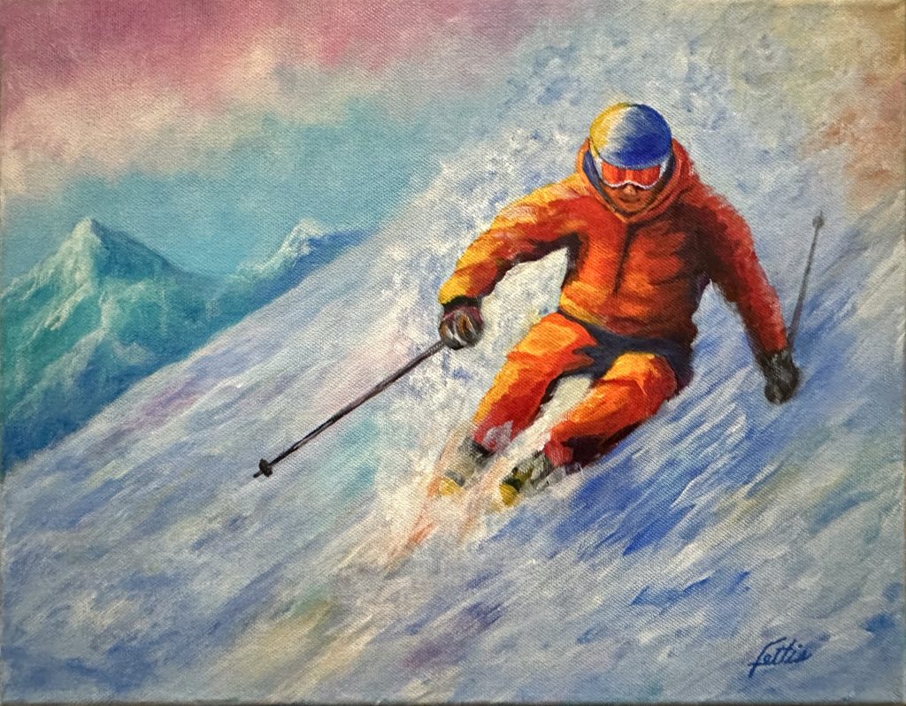 Skiing downhill (11” x 14” canvas). Inspired by Ginger Cook tutorial