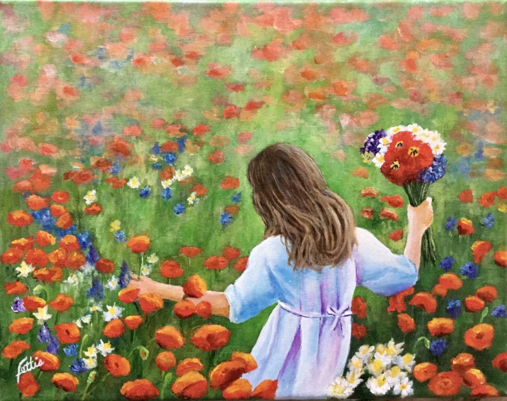 Running thru the poppy fields (9” x 12”) Based on ginger Cook tutorial. SOLD